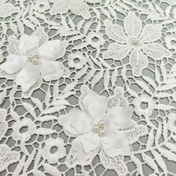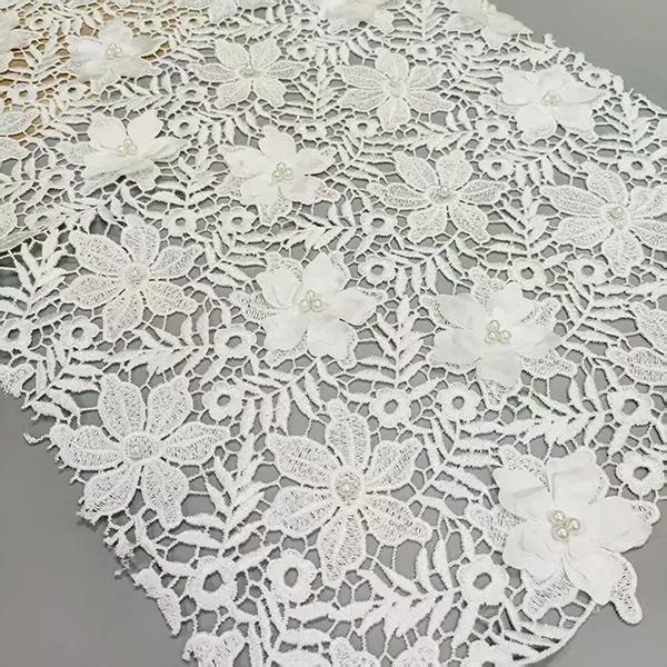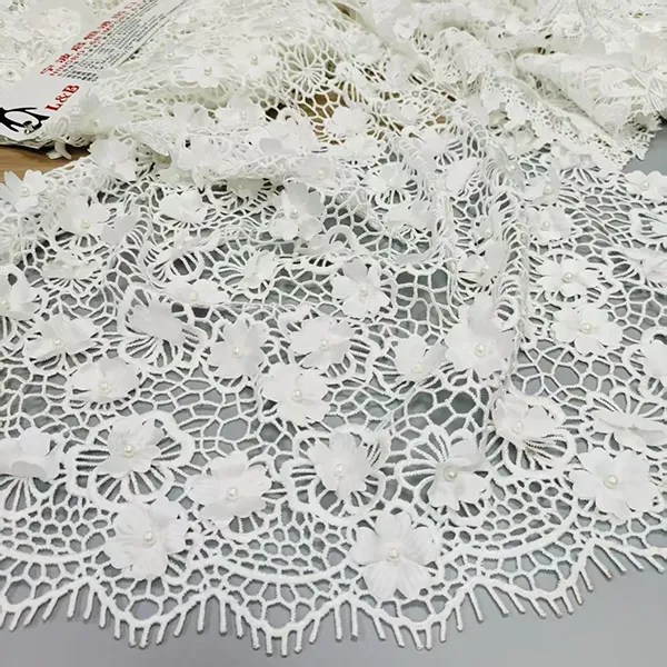 | Terméknév | 3D virágos csipke guipure szövet gyöngyök vízoldható zsinór hímzés guipure csipke szövet | ||