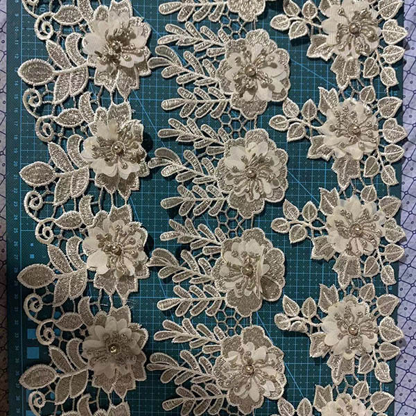 Létezik még egy imádnivaló csipketípus – 3D virágos poliészter díszítés, ezek általában felvarrható anyagok. Teljesen imádnivalóan néznek ki, és tökéletesek az alkalmi ruhák és az estélyi ruhák díszítésére.