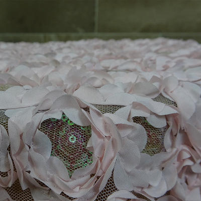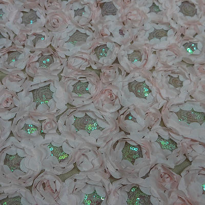 3D-s rózsa esküvői szövet virágok szőnyeg puha menyasszonyi ruha toll csipke szövet flitter lágy tollas csipke, fényes flitterrel párosítva, a virágok háromdimenziós és tele vannak, finom és fényűző tapintással. Ez alkalmas a menyasszonyok esküvői ruháira, estélyi ruhákra, fátyolokra és esküvői dekorációkra, amelyek romantikus és elegáns tapintást adnak hozzá. Nagyon elasztikus és lélegző kialakítással szükség szerint kivágható, és ideális választás a csúcskategóriás egyedi esküvői kellékekhez.
