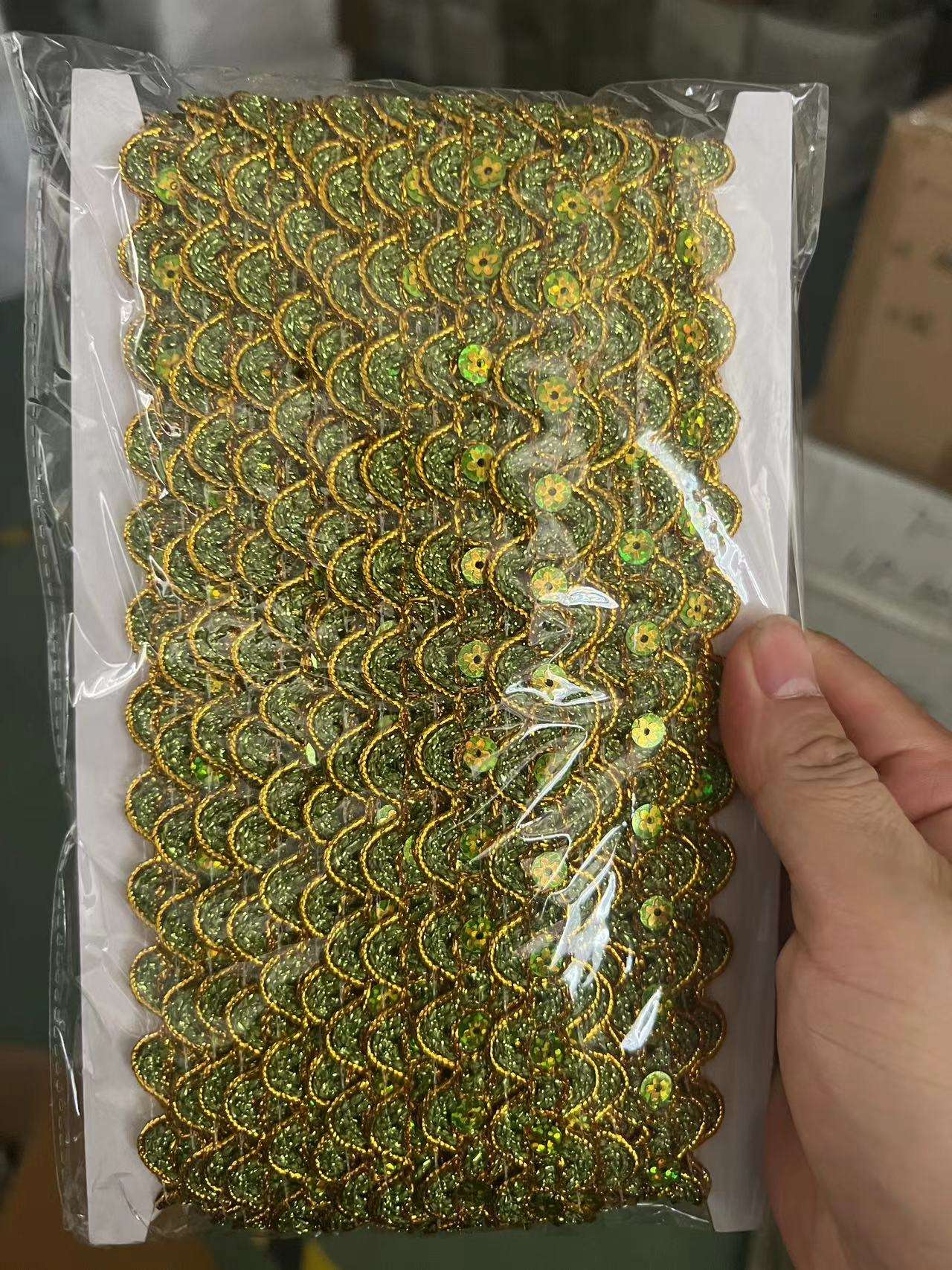 Ruházati kiegészítők Az arany és az ezüst metál határcsipke díszítés fém arany flitterek hímző csipke díszítés a fém flitter hímzés technikáját alkalmazza, és kombinálódik az üreges csipke kialakításával, így alkalmassá teszi a ruházati kiegészítő dekorációra.