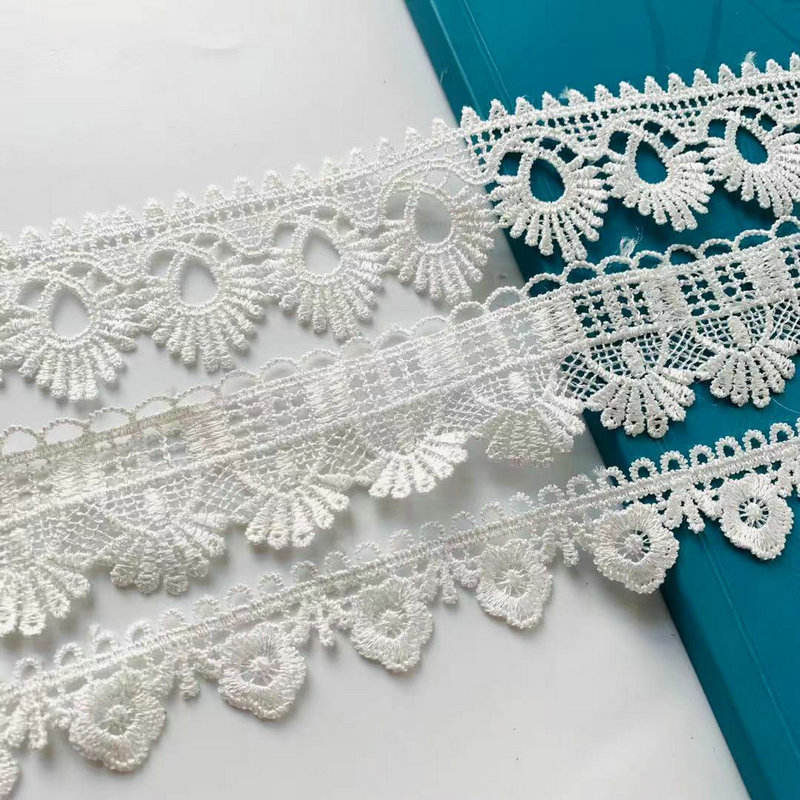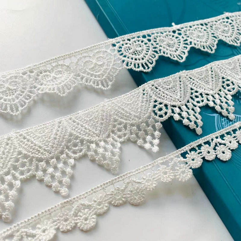 Virágcsipke díszítés 100% poliészter kémiai csipke A finom virágmintás kémiai üreges technika a textúra fényét, puha és lélegzővé teszi. Ruházat, otthoni textil, esküvői ruhák stb. Dekorációjára alkalmas, különféle színek és szélességek közül választhat. Mosható és tartós, és támogatja a testreszabott kialakítást.