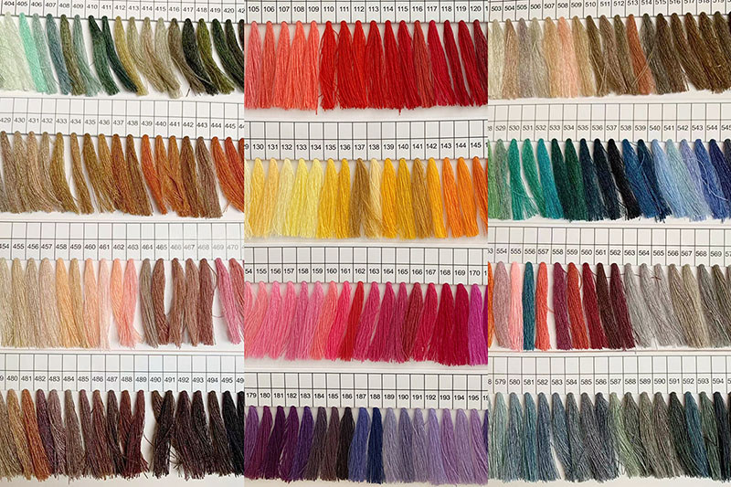 Még ugyanabban a márkában is, enyhe színváltozások fordulhatnak elő a különböző festék tételek között. Ha a színmegfelelőség kritikus, próbáljon meg ugyanazon festék -tétel szálait használni. Néhány hímzőszoftver és még az online eszközök is lehetővé teszik egy szín feltöltését, és javasolják a szálakat a márkák között. Ezek hasznosak lehetnek, de mindig kétszer ellenőrizzük az eredményeket. A diagramok hasznosak, mindig jó ötlet, ha lehetséges, ha lehetséges, az átalakított szálakkal összehasonlítjuk az eredeti színt, különösen a kritikus projektek esetében. Gyakran vásárolhat szálszínek mintakártyáit. Tisztában kell lennie azzal, hogy a tökéletes egyezés nem mindig lehetséges. Előfordulhat, hogy ki kell választania a legközelebbi egyenértéket, és elfogadnia kell a kis variációkat.
